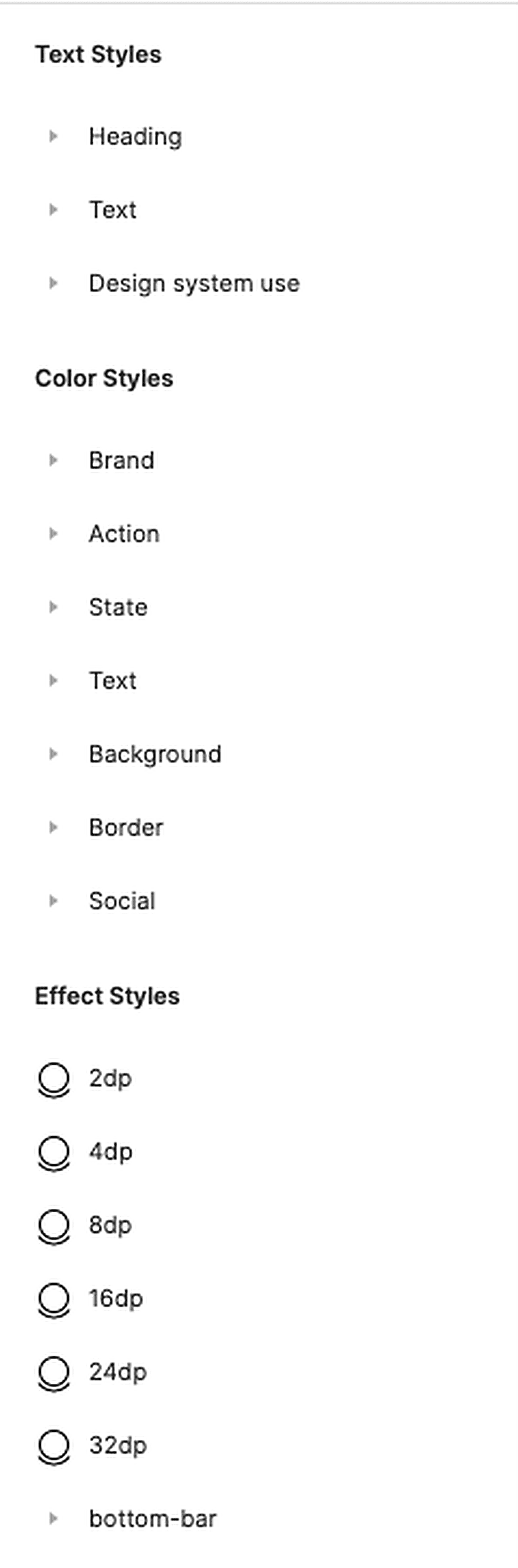 Colors, Typography, Elevation, Iconography, Illustrations.