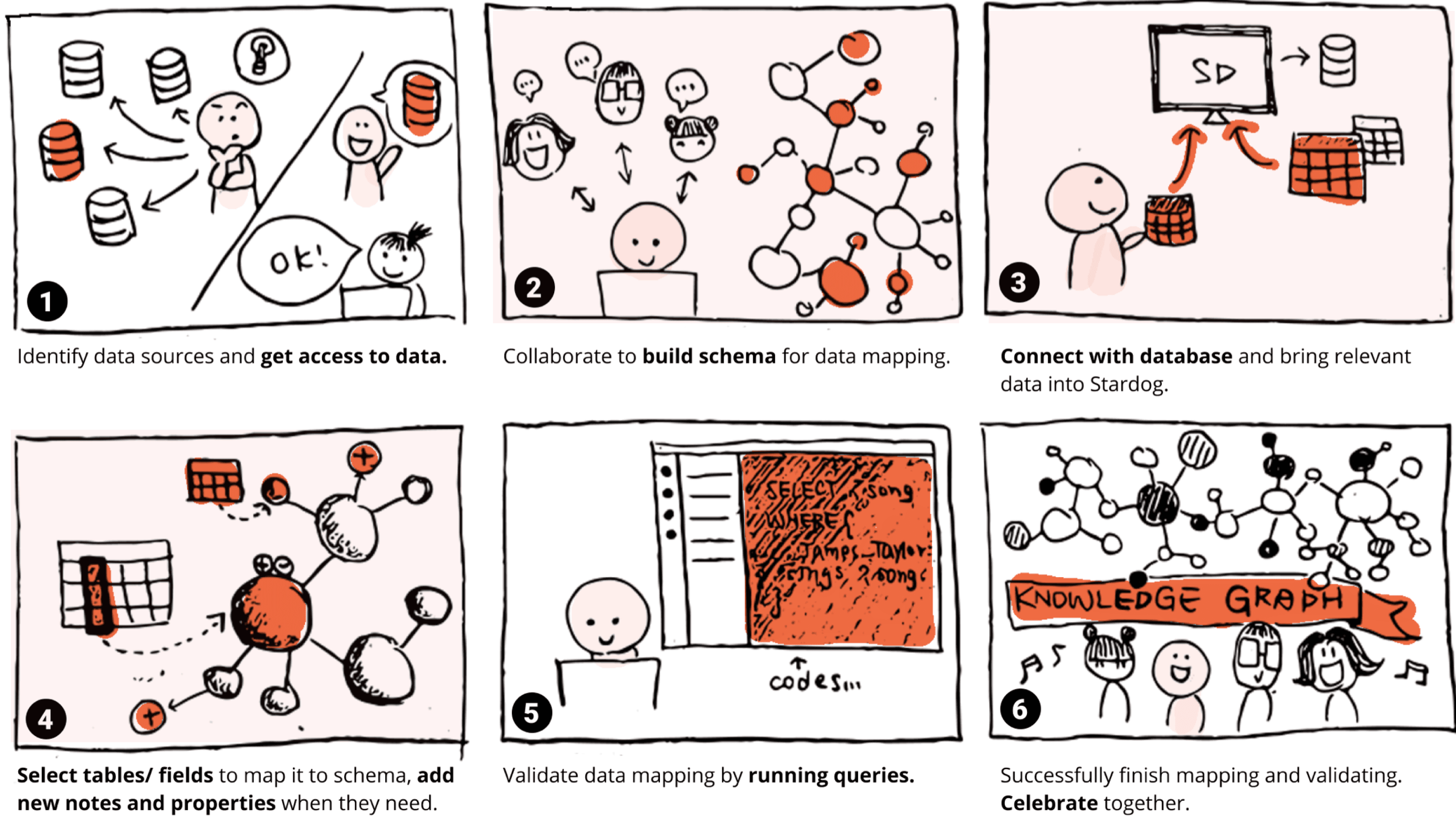 Storyboard illustrating knowledge graph creation process.