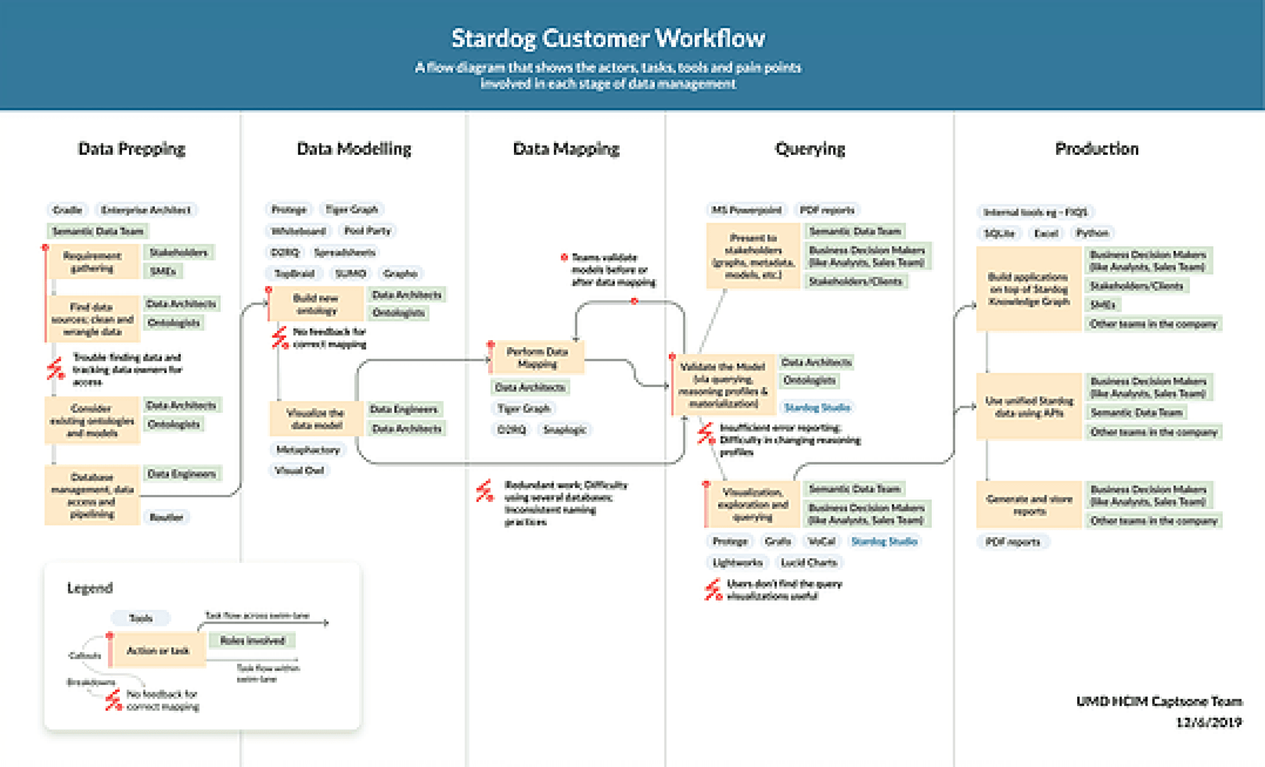 Our capstone project team was commissioned by the CEO of Stardog, a fast-growing Enterprise Knowledge Graph Platform provider, to redesign their existing knowledge graph product that could be used not only by technical users but also business analysts who typically rely on IT to create a graph for them. We identified a need for a simpler data unification process. We collaborated closely with their product and engineering team on a mission to design various Graphical User Interfaces (GUIs) that would allow non-technical users to do data mapping, data modeling on their own without any coding.